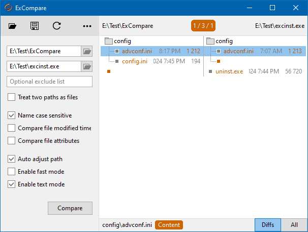 ExCompare is a comparison tool to compare folders and file archives such as zip, rar, 7z. It's designed to help find out differences between two folders, two file archives, or a folder against a file archive.